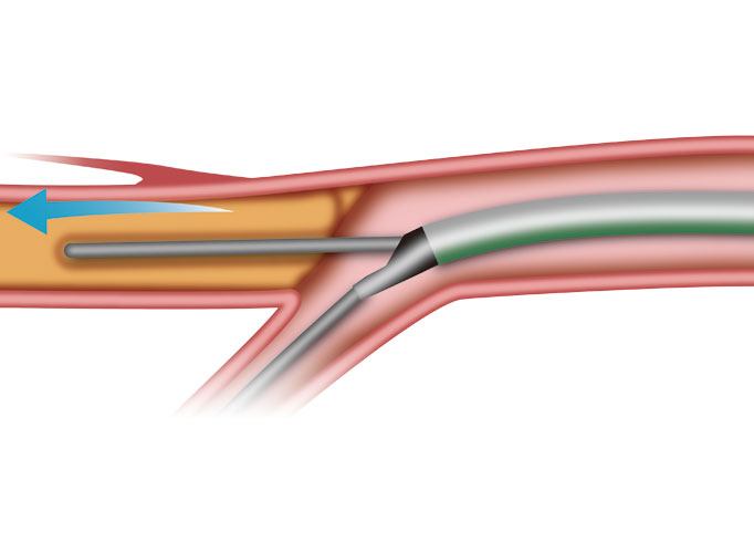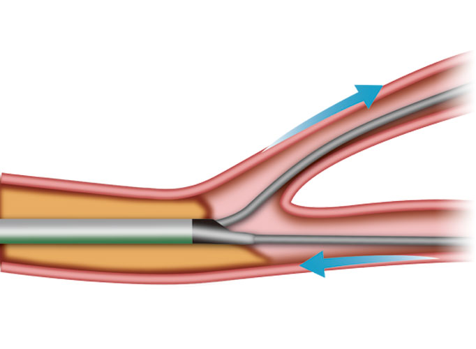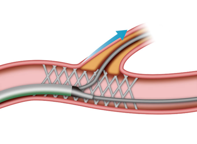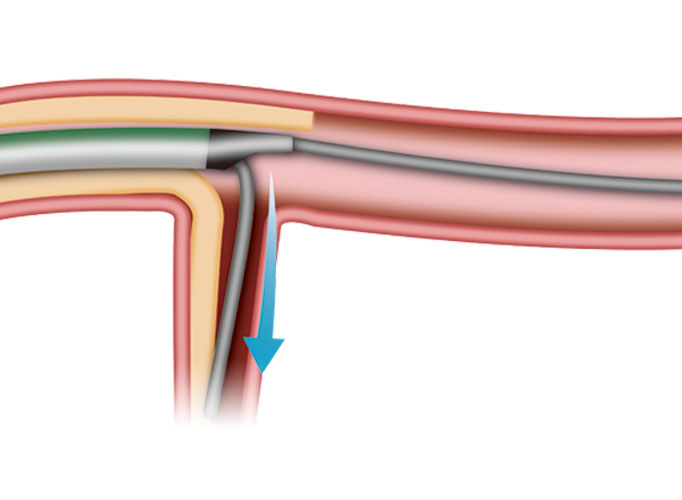「SidePass LM」は、モノレールルーメンのガイドワイヤーサポートにより、ターゲット手前の狭窄や屈曲に負けない通過性が期待できます。